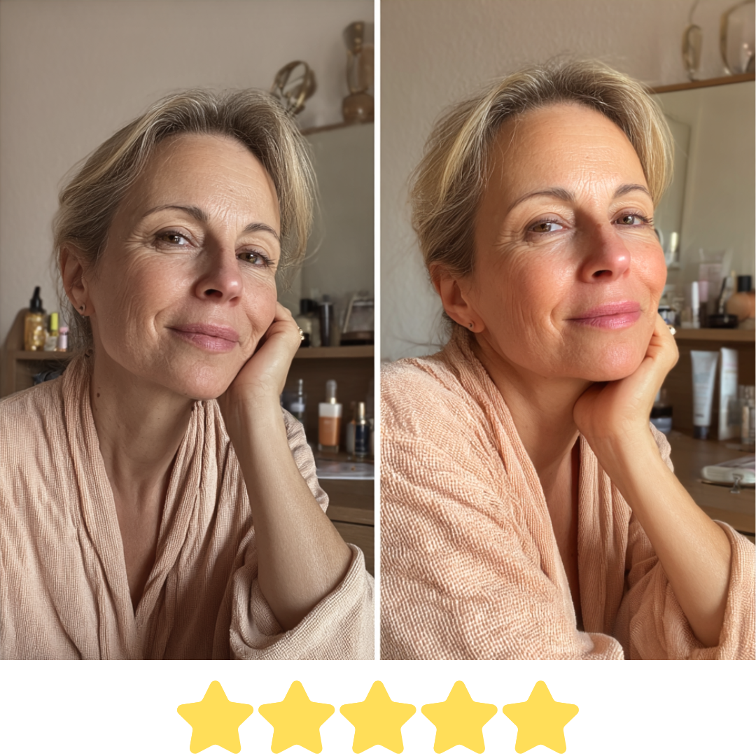 Viele Anti-Aging Seren pflegen nur oberflächlich. Die Haut fühlt sich kurz weich an, aber echte Straffung oder Glättung bleibt aus. Warum? Weil es an tiefenwirksamen Inhaltsstoffen fehlt, die wirklich etwas bewirken.
